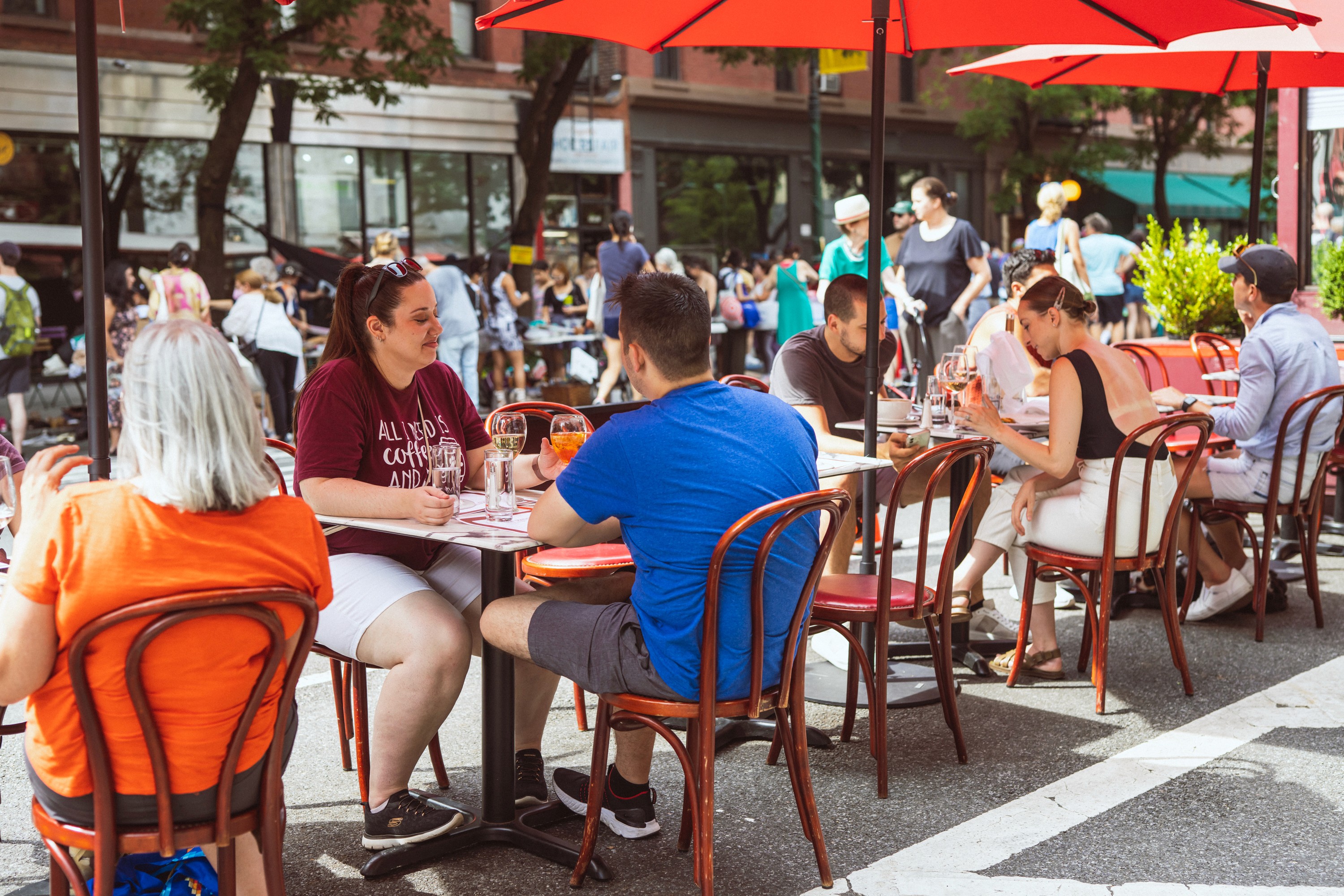 New York City’s Open Streets program transforms streets into public space open to all. These transformations allow for a range of activities that promote economic development, support schools, and provide new ways for New Yorkers to enjoy cultural programming and build community.